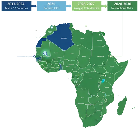 2025: 10 pods, 100 students (Bamako pilot)